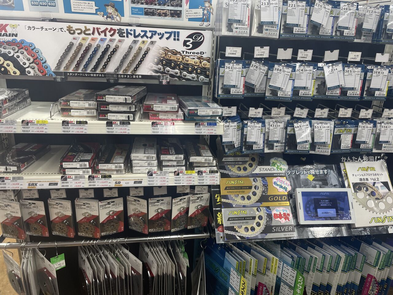 スプロケットの在庫もありますので、適合などに困ったら、スタッフにお申し付け頂くか・・・