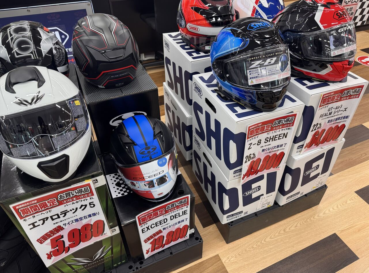フルフェイスヘルメットも