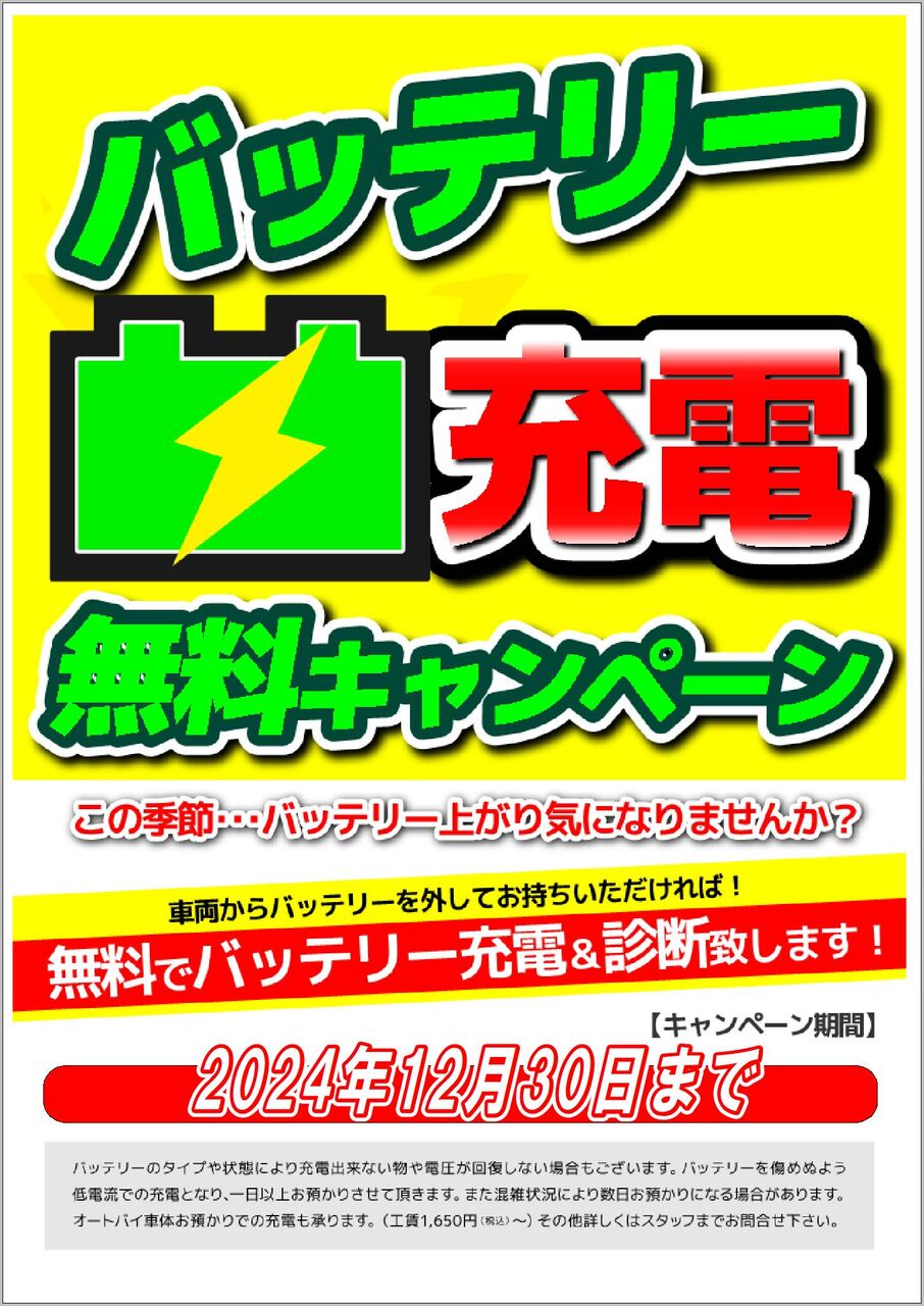 千葉北2りんかん 【千葉北2りんかん店舗限定】バッテリー充電無料キャンペーン