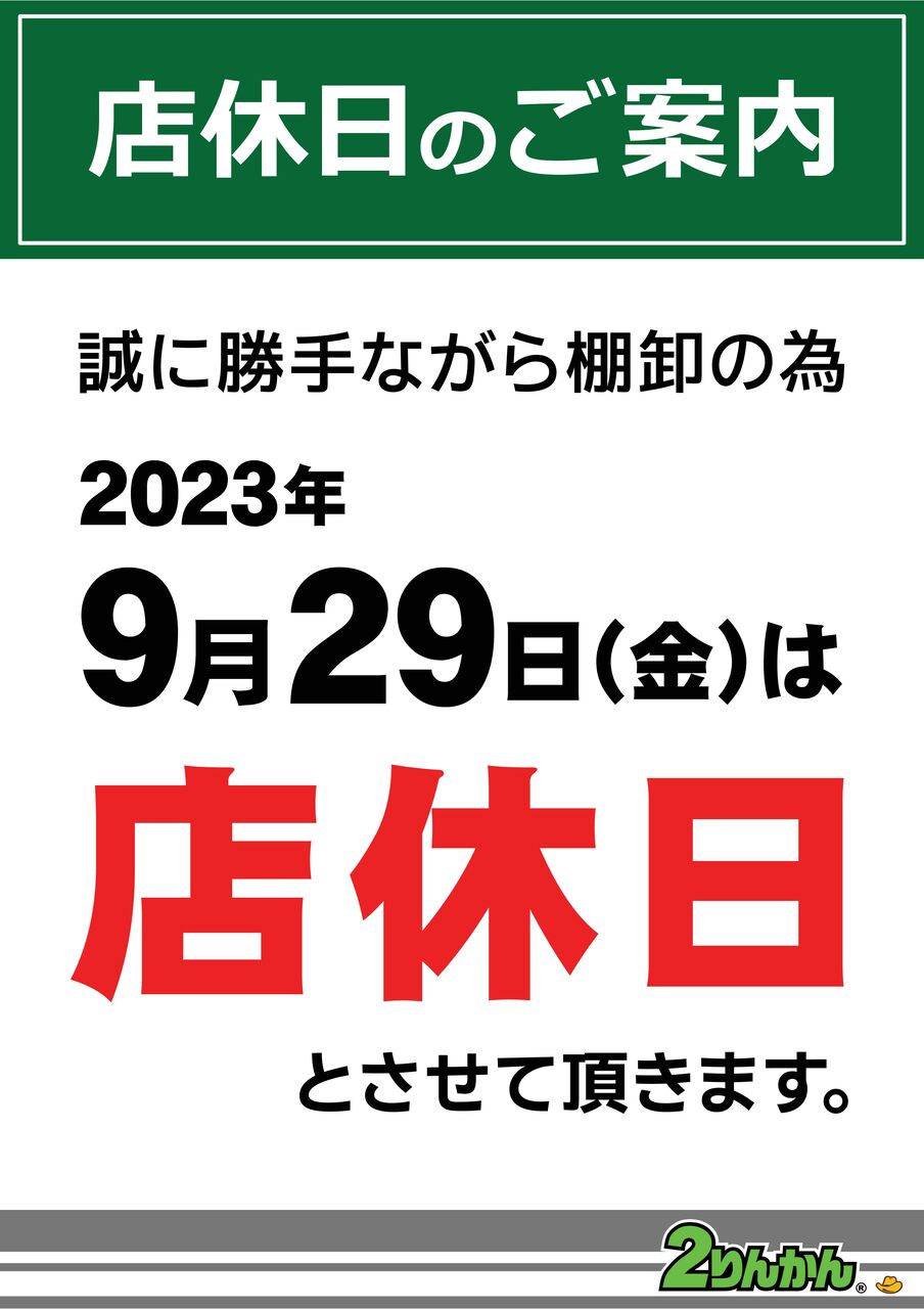 誠に勝手ながら本日9月29日(金)は