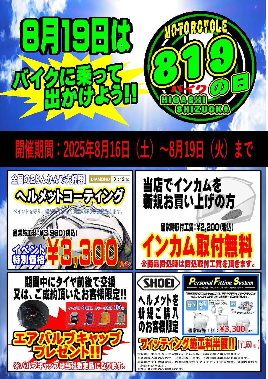 º£Ç¯¤â8/19Æü¡¡¥Ð¥¤¥¯¤ÎÆü¤Ë¹ç¤ï¤»¤Æ¥¤¥Ù¥ó¥È¤ä¤Ã¤Á¤ã¤¤¤Þ¤¹¡ª¡ª