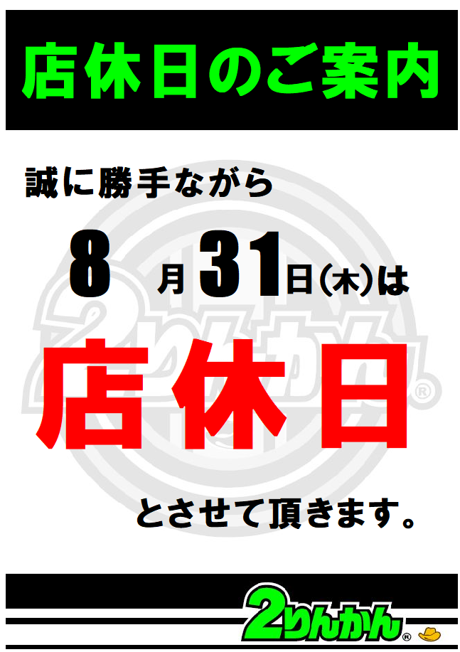 広島舟入2りんかん 【広島舟入2りんかん】定休日のお知らせ