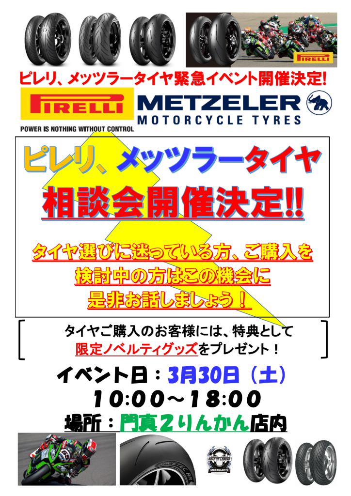 門真2りんかん 【門真2りんかん】ピレリ、メッツラータイヤ相談会!!