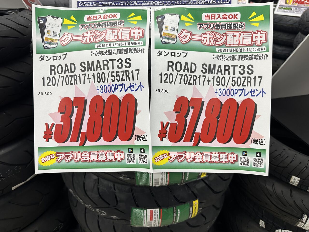 ダンロップ ロードスマート3Sのセットタイヤがお安くなってます!!