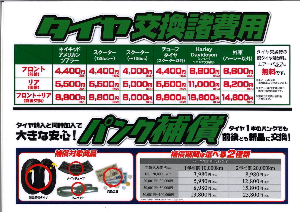 タイヤのお値段&工賃のお話です
