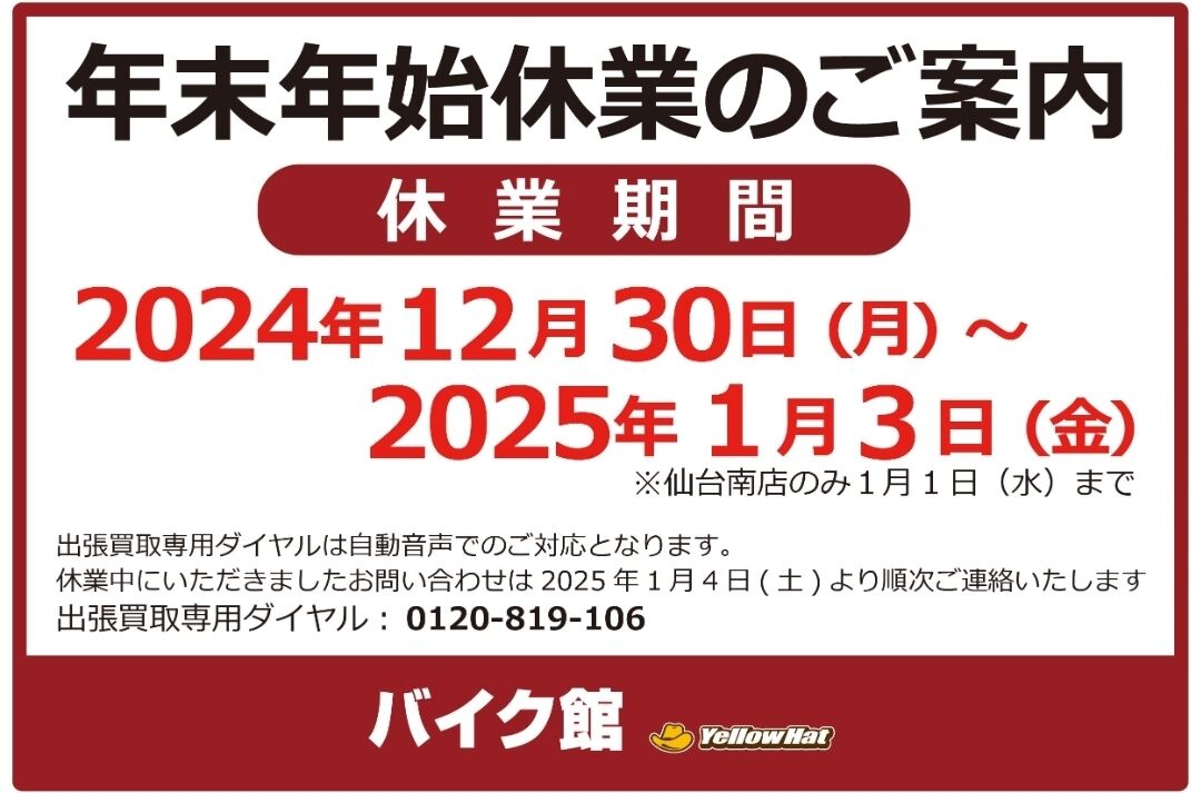小倉2りんかん 【小倉2りんかん】☆年末年始の営業時間について☆【バイク館】