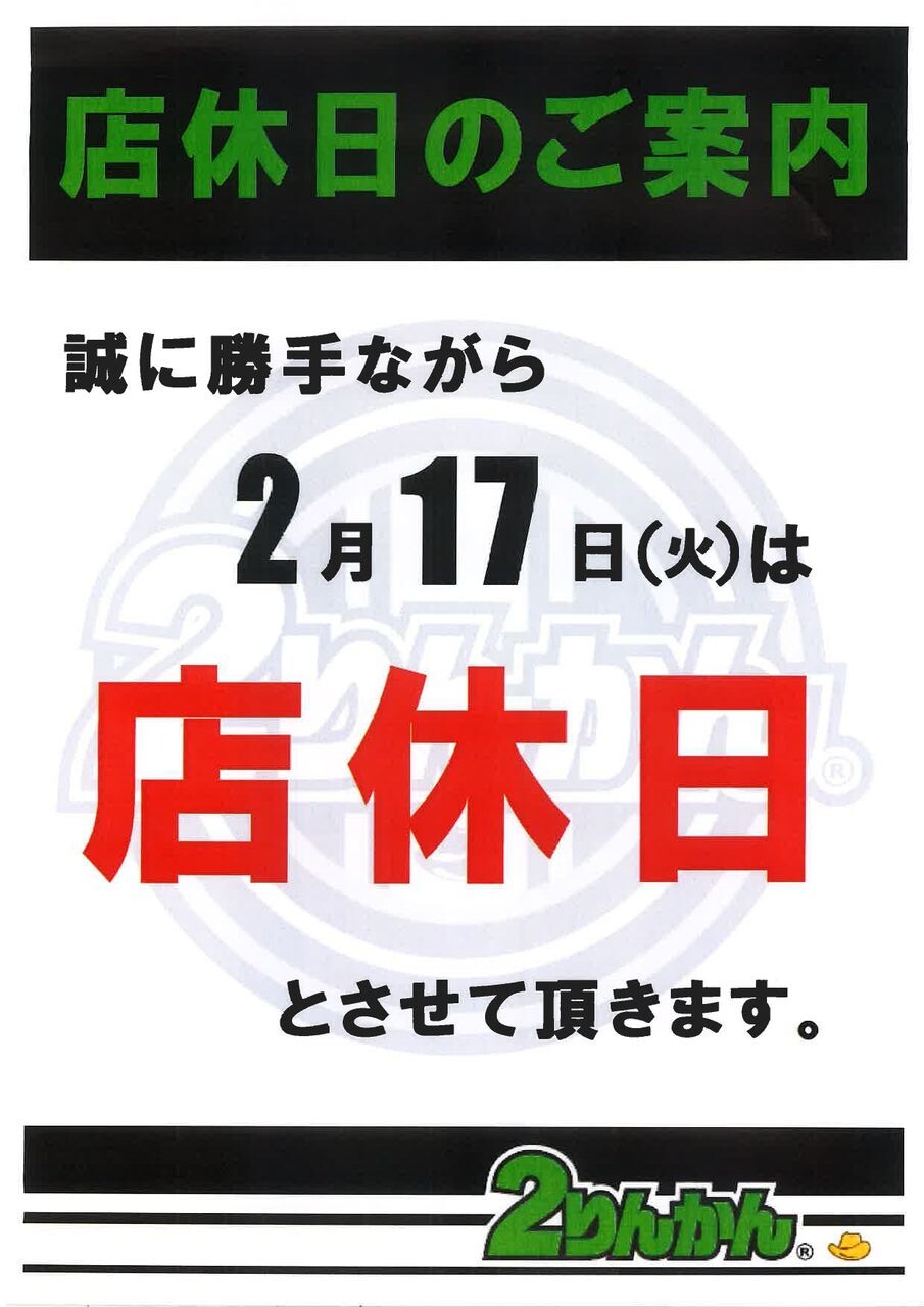 明日2月17日は店休日とさせていただきます!!