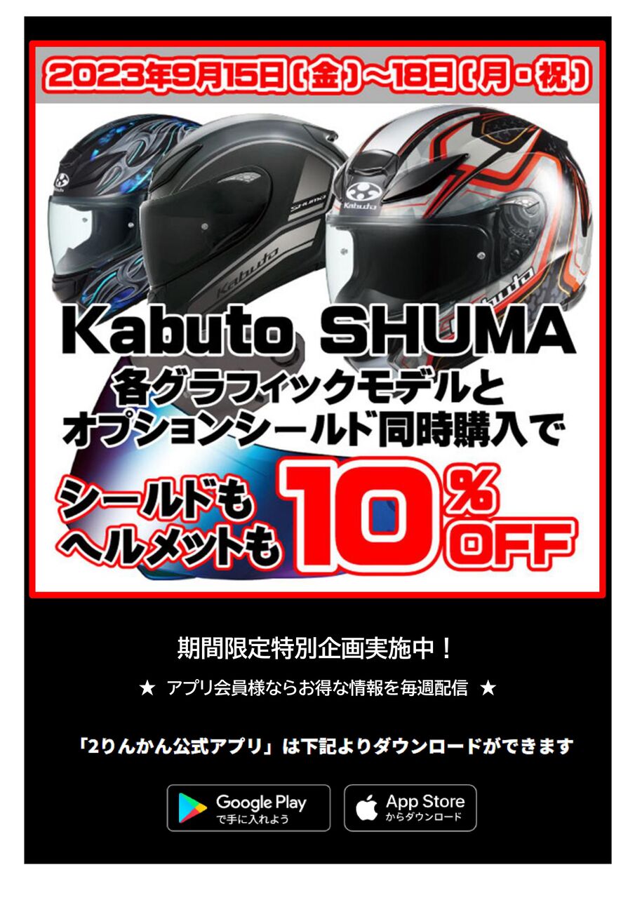 ヘルメットもシールドもどちらも10%OFFになります