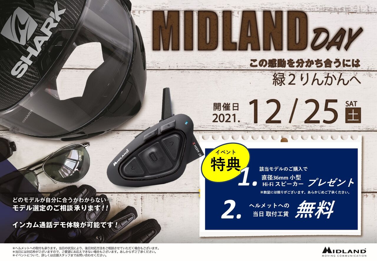 12月25日のみの開催となっておりますので、インカム購入を考えている方は緑2りんかんまで!!