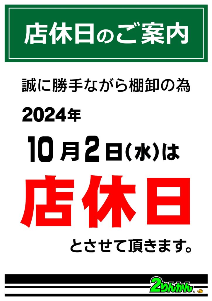 10月2日(水)は誠に勝手ながら