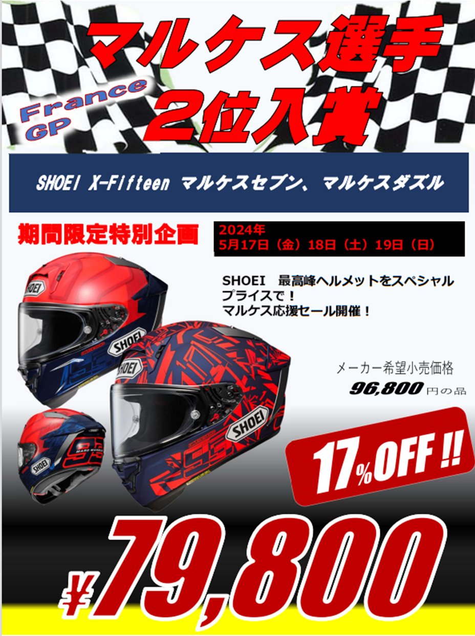 SHOEI X-Fifteen ¥Þ¥ë¥±¥¹7¡¢¥Þ¥ë¥±¥¹¥À¥º¥ë¤¬¤Ê¤ó¤È¡¢17¡óOFF¤Î79,800±ß¤Ç¤¹