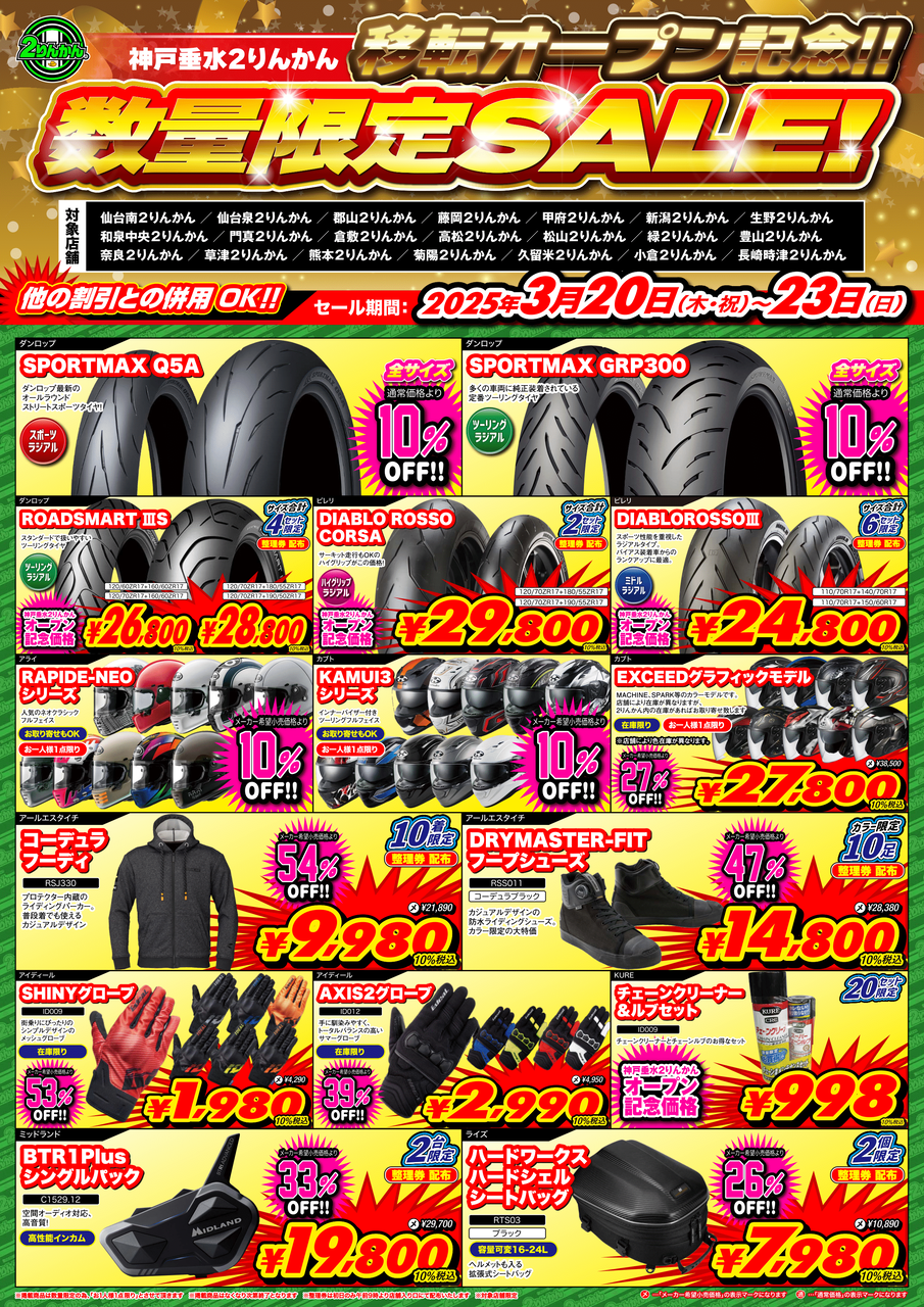 ※神戸店オープンセールと春のバイクライフ応援フェアではセール内容が異なります。