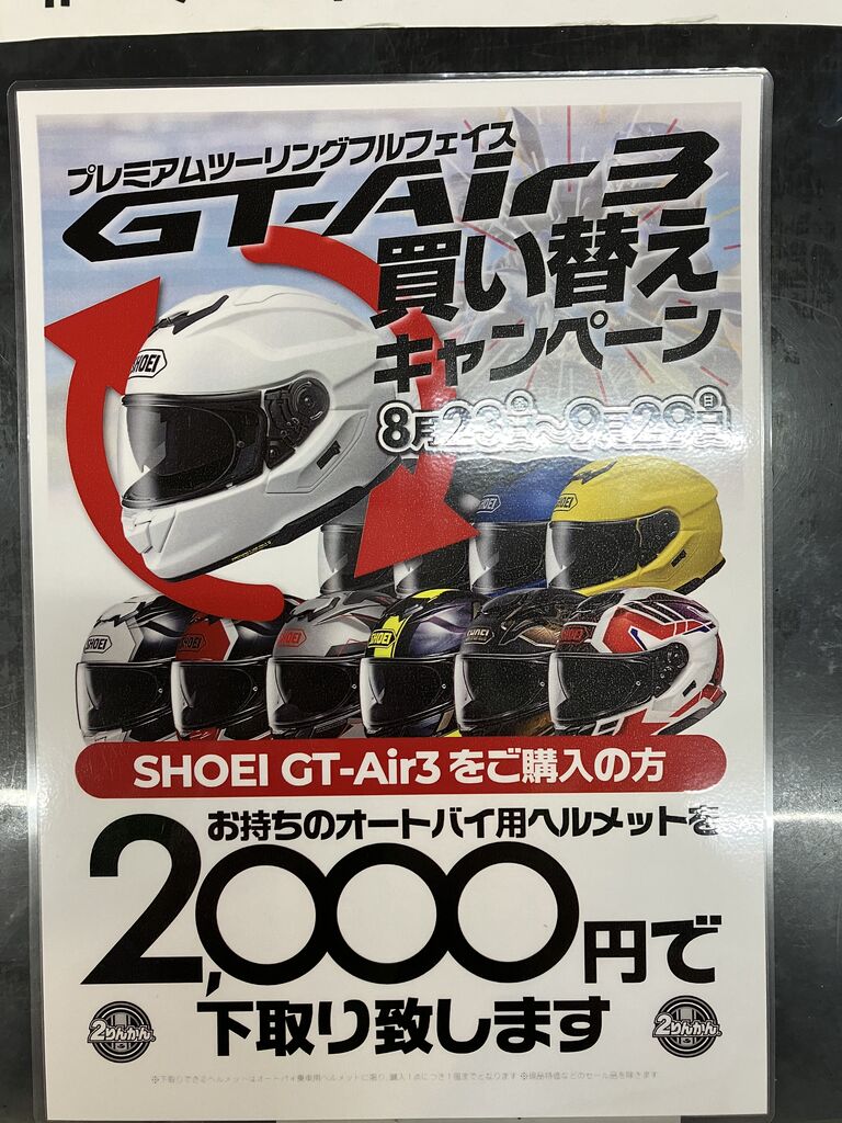 GT-Air3をお買い上げのお客様に限り、期間中にご不要のヘルメットをお持ちいただくと、
