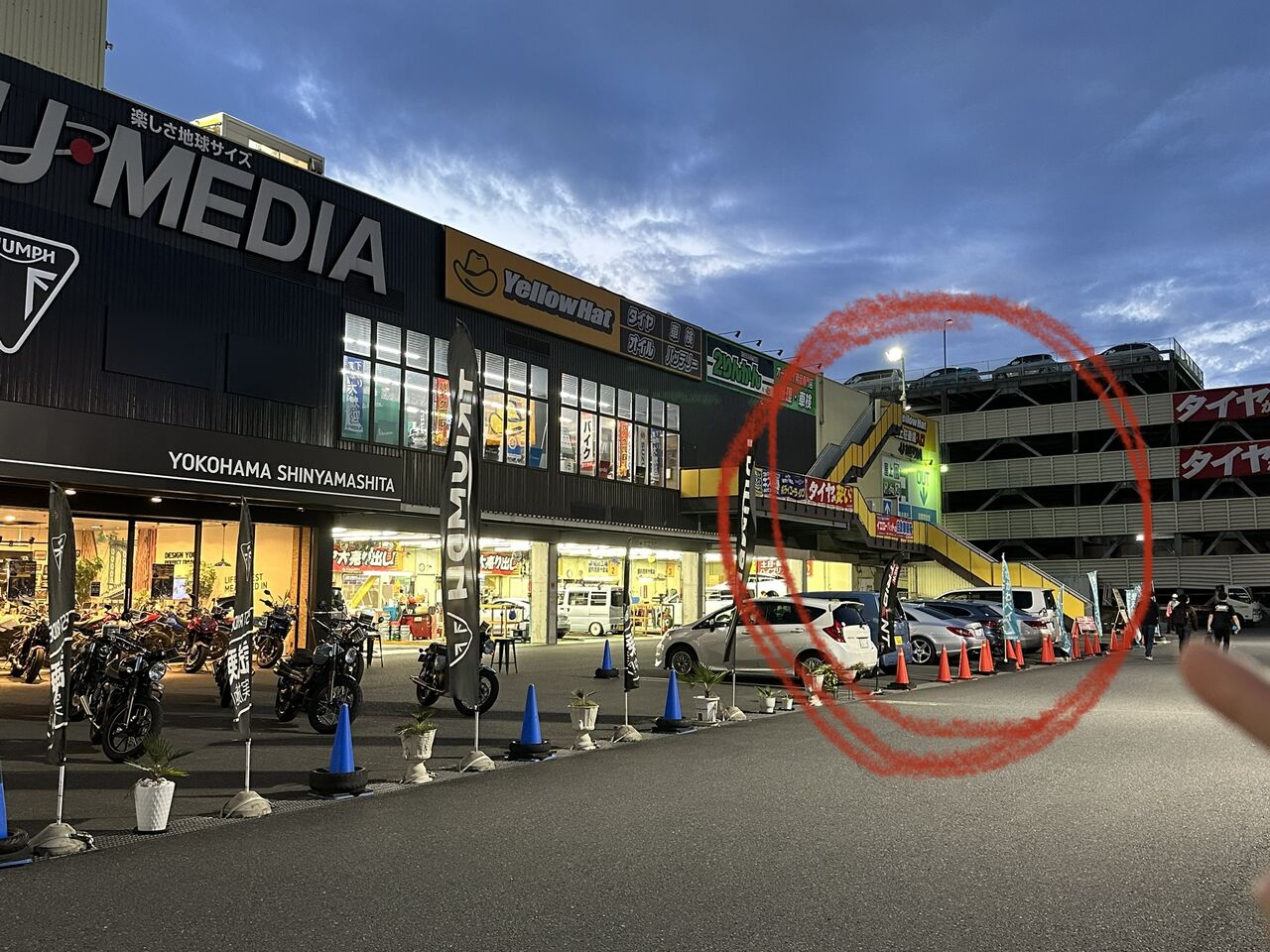 たくさんのバイクに囲まれ
