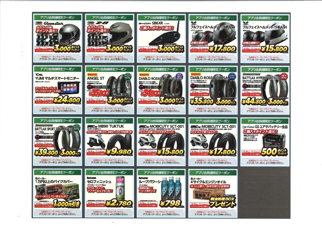 (一部、クーポンは11月6日まで使えます)