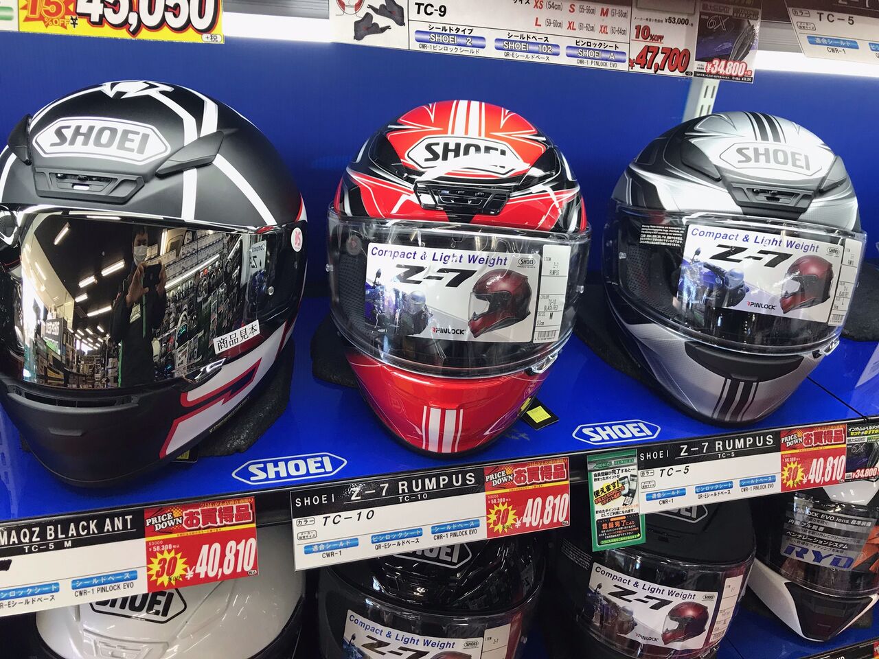SHOEIヘルメットZ-7グラフィックモデルが30%オフの¥40,810での現品特価となっております。