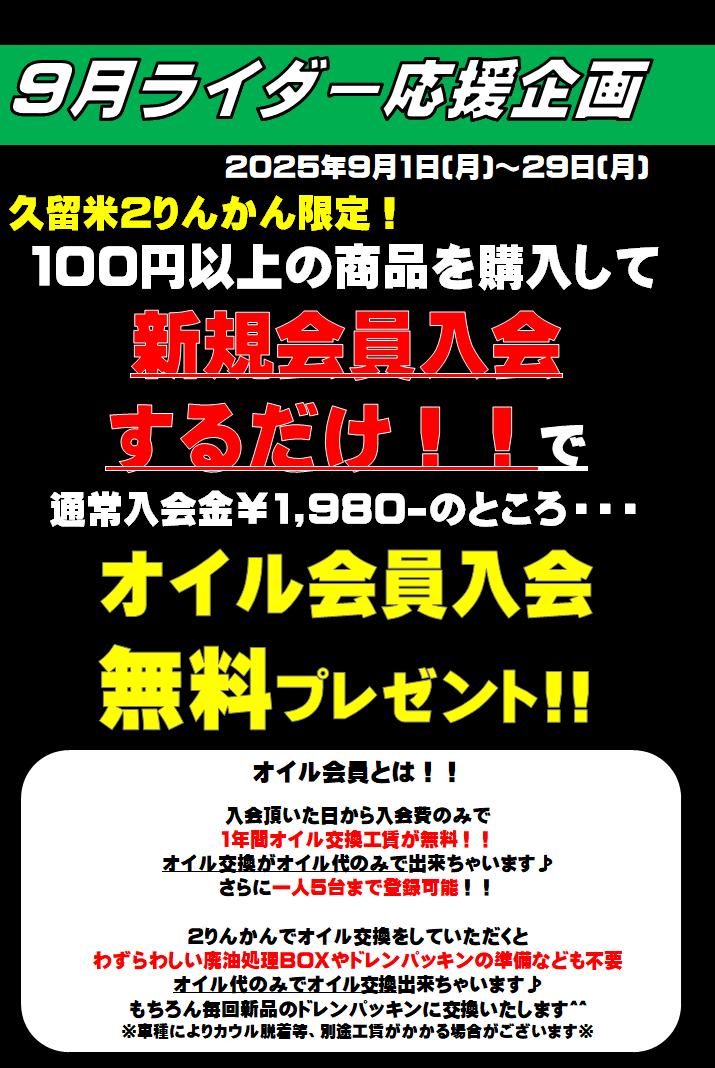¡¦Æþ²ñÆü¤«¤é1ǯ´Ö¡¢¥ª¥¤¥ë¸ò´¹¥¯¥Á¥ó¤¬ÌµÎÁ
