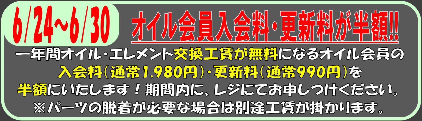 ¥ª¥¤¥ë²ñ°÷Æþ²ñÎÁ¡¦¹¹¿·ÎÁ¤¬Ä̾ïÎÁ¶â¤«¤éȾ³Û¤Ë¤Ê¤ê¤Þ¤¹