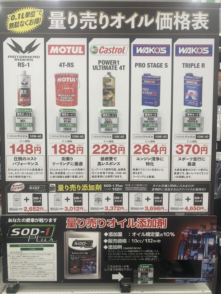 2りんかんは、ライダーのお財布に優しい、量り売りオイルの販売をやっています!