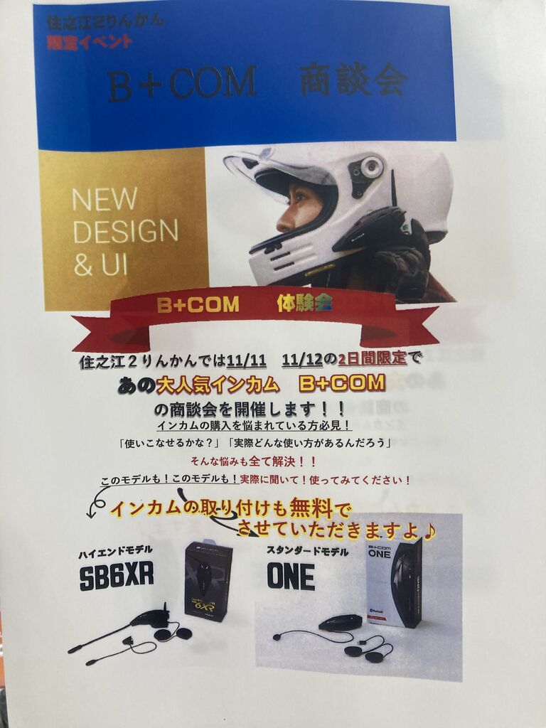 住之江2りんかん 住之江店週末だけの特価ヘルメット&B+COM体験&無料取り付け