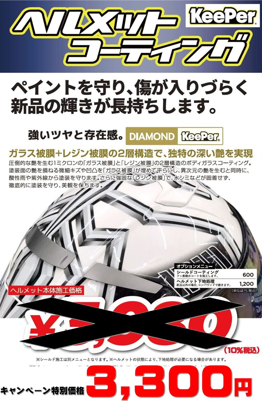 ヘルメットへのKeePerコーティングを