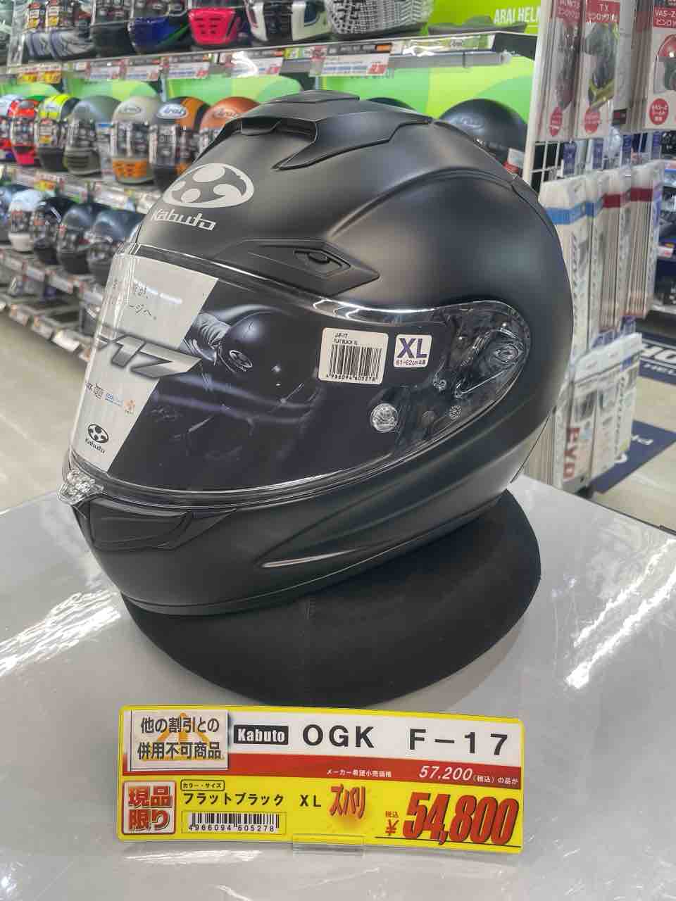 カブトの最高峰レースヘルメット「F17」のソリッドモデルがお買い得となっております✨