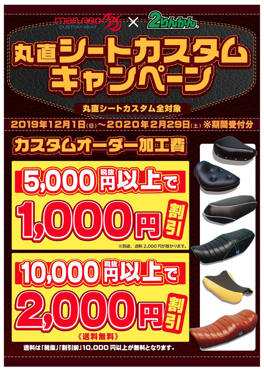対象は期間中受付分の丸直シートカスタム全てが対象となっています。