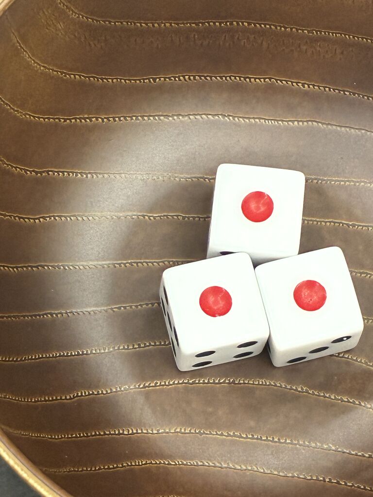 閉店後サイコロ3つでやってみたおがっちでした(゚∀゚)アヒャヒャ