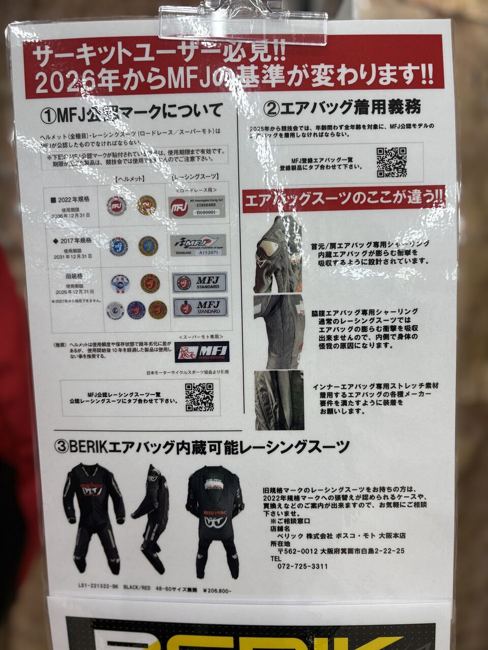 ご試着いただけるレーシングスーツ等ありますが・・・