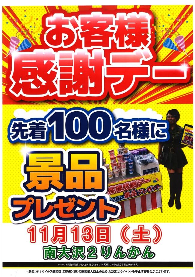 南大沢2りんかん お客様感謝デーは先着100名様に景品プレゼント!