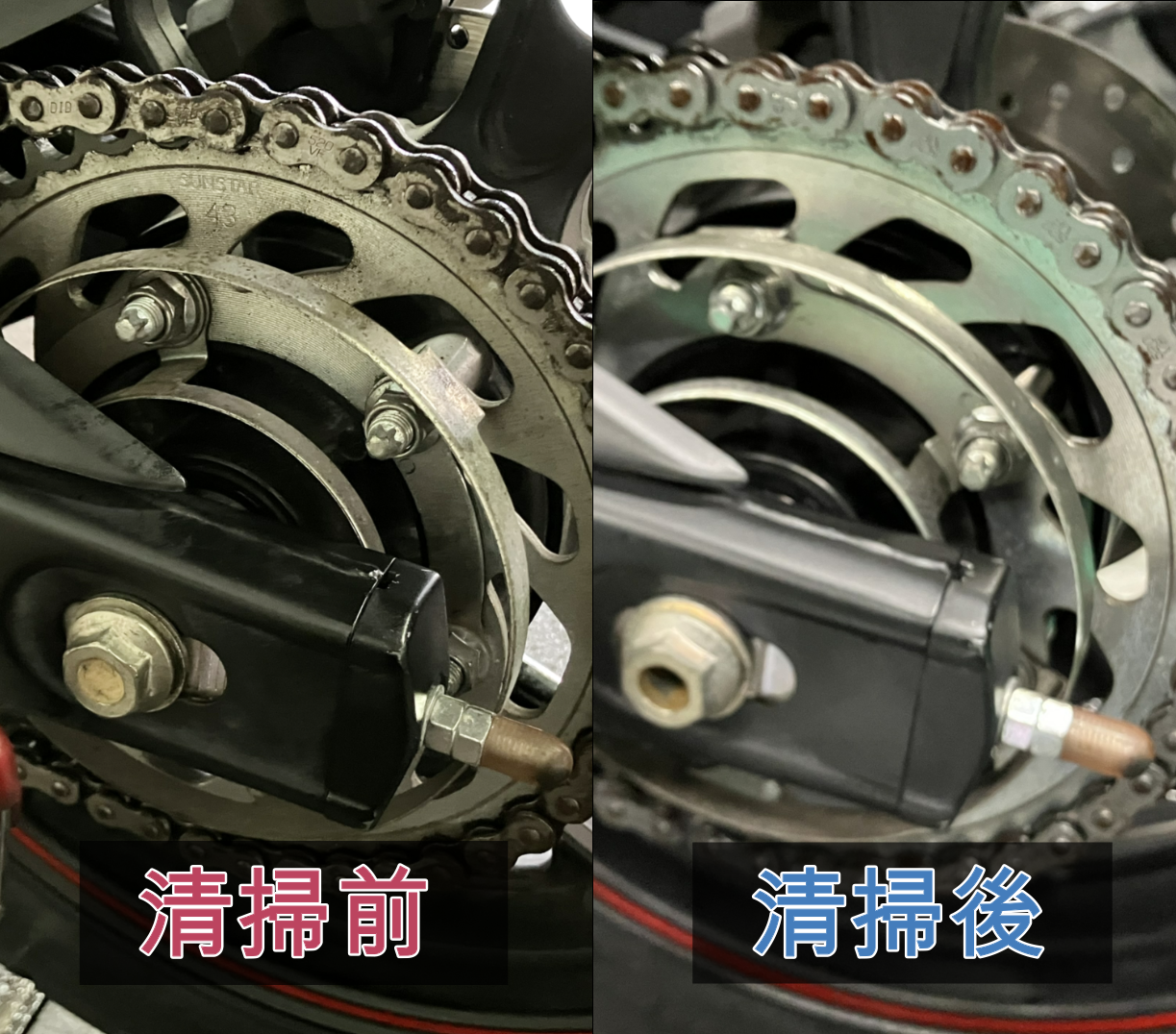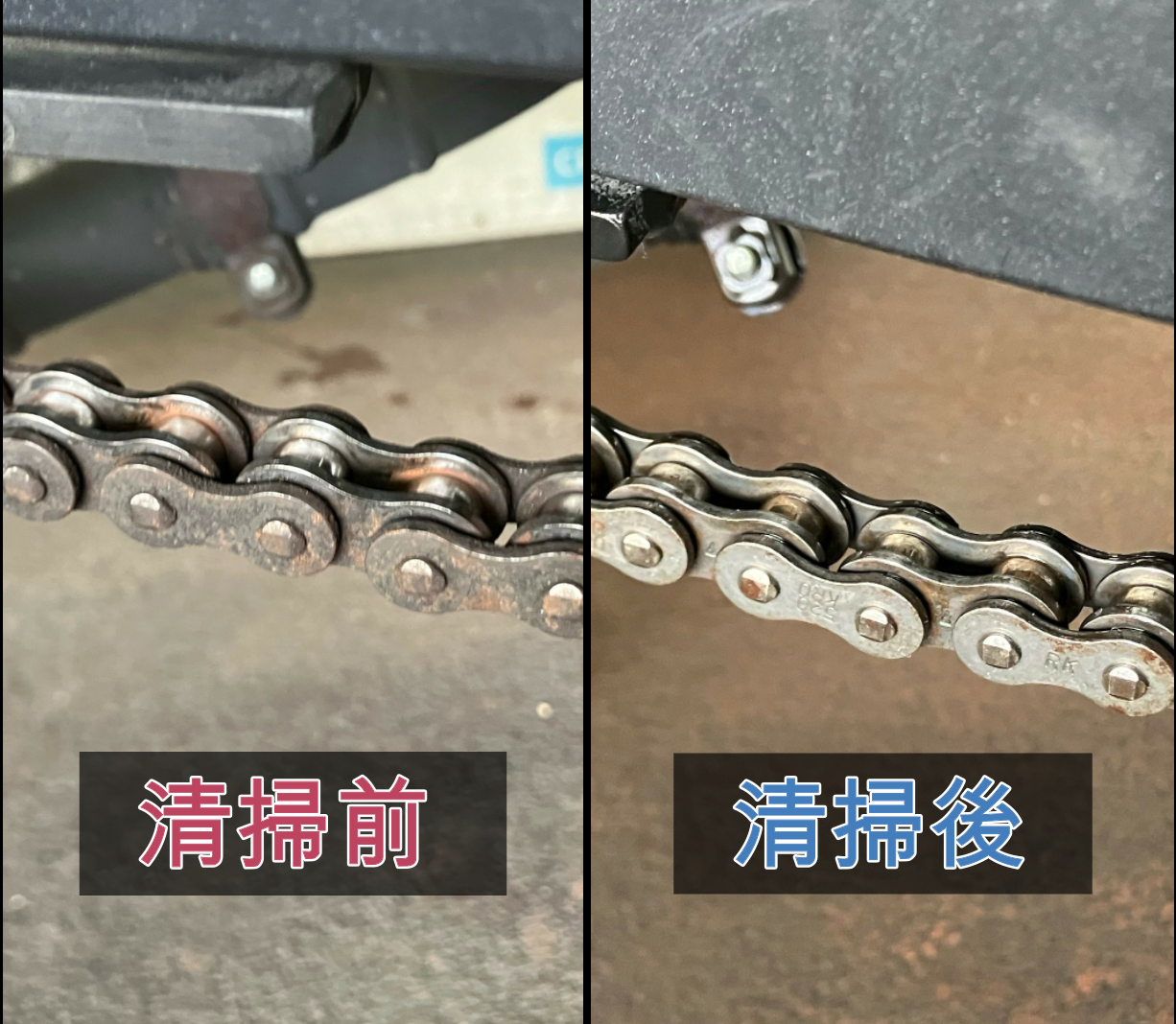 また、チェーンの清掃とセットで給油も怠ってしまうとこれまた同様に動きが悪くなったり錆の原因にもつながり良いことなし😫😫
