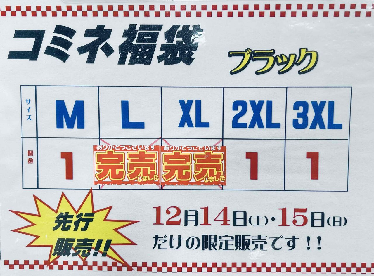 福岡2りんかん 【福岡2りんかん】コミネ福袋 12月15日(日)在庫数