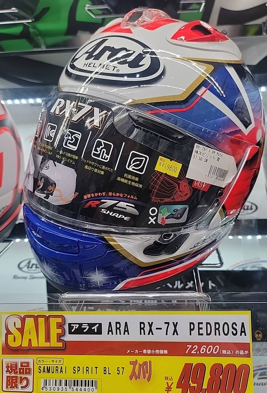 まずは、ARAI RX-7X PEDROSA SAMURAI SPIRIT 57~58現品限りで49,800円