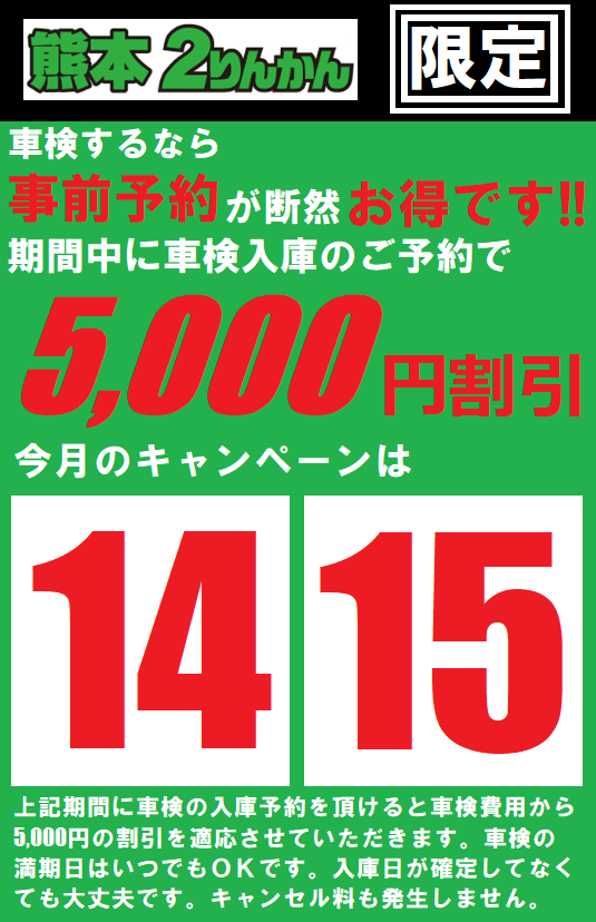熊本店限定車検キャンペーン!!