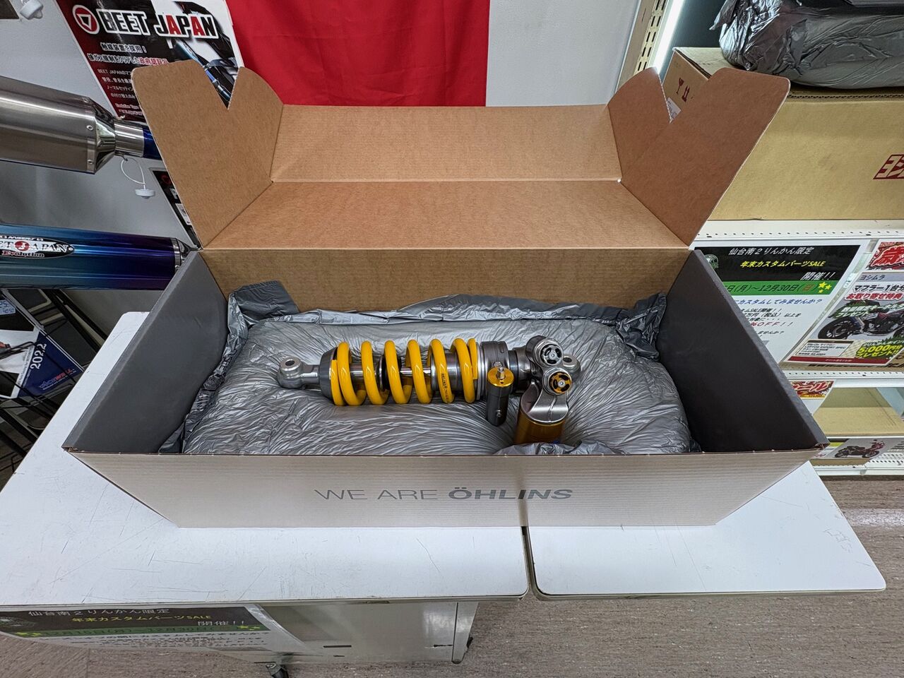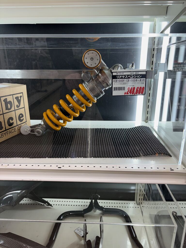いきなりですが、ヘルメットやウェア、そのほかバイクパーツ等たくさん置いてありますが、