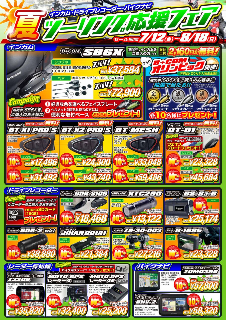 インカムや ドラレコ、レーダー探知機の購入チャンスです。