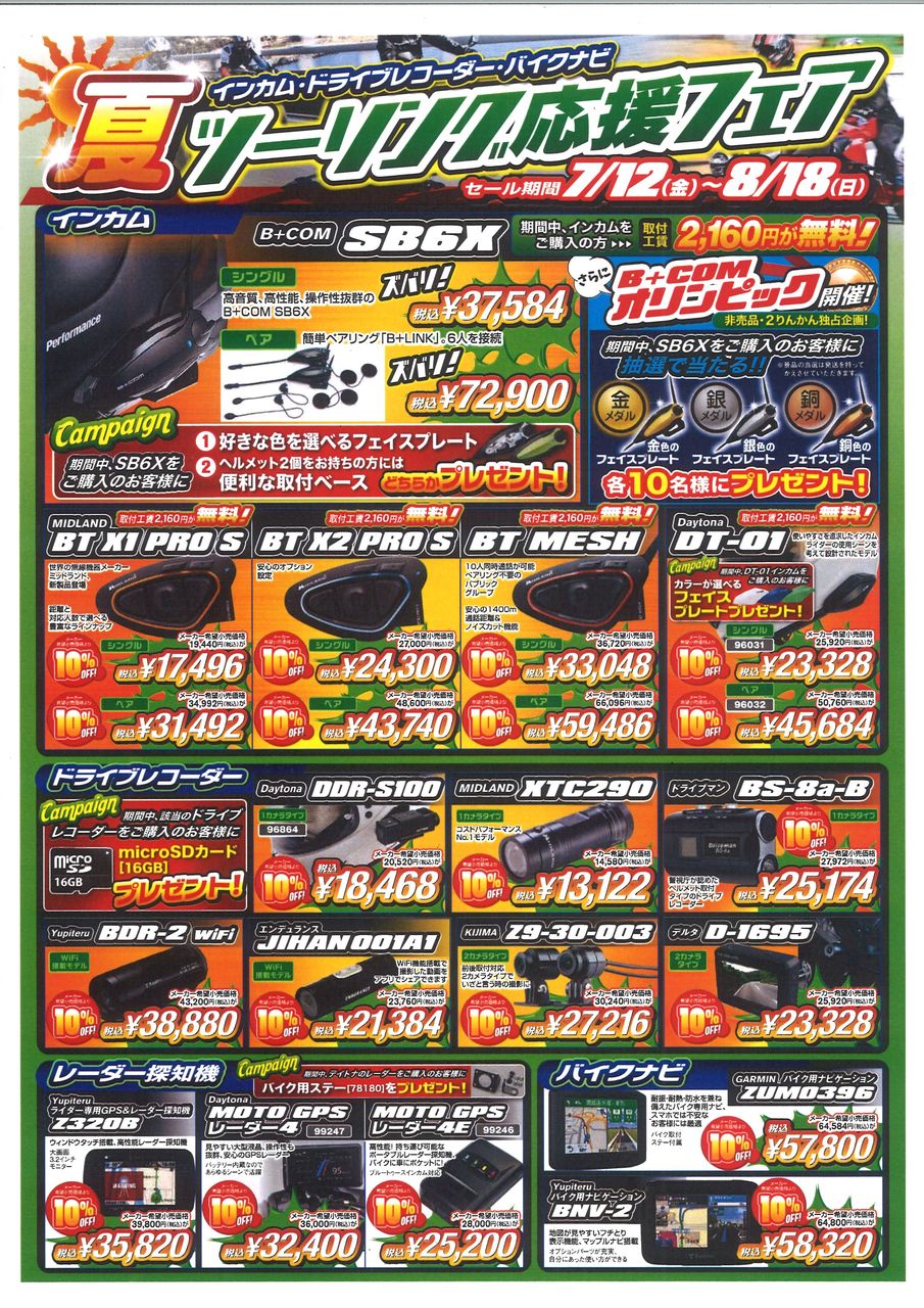 夏ツーリング応援フェアが始まります