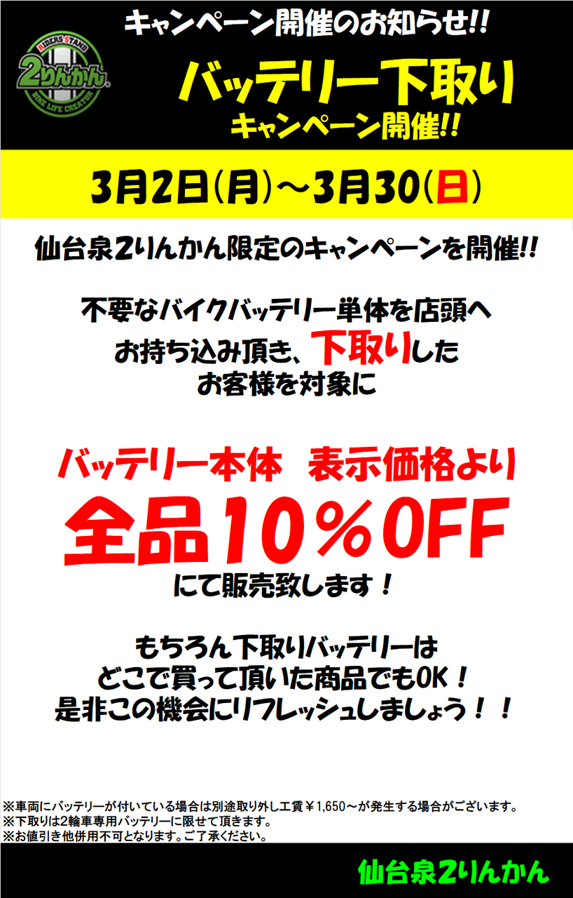 ½ÕÀè¤Î¥Ð¥¤¥¯¥·¡¼¥º¥óÅþÍè¤ÎÁ°¤Ë¤ª¼ê»ý¤Á¤Î¥Ð¥Ã¥Æ¥ê¡¼¤Î¥á¥ó¥Æ¥Ê¥ó¥¹¤ò¤³¤Îµ¡²ñ¤Ë¤´ÍøÍѤ¯¤À¤µ¤¤