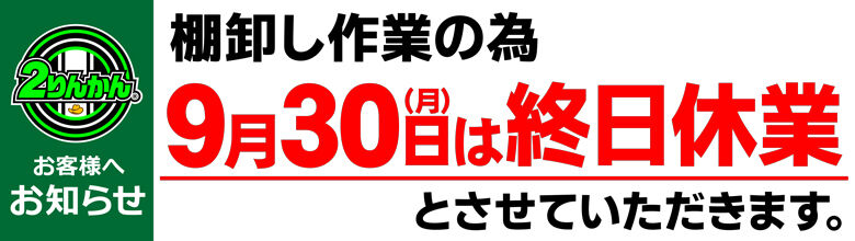 9月30日は棚卸の為、店休日とさせて頂きます。