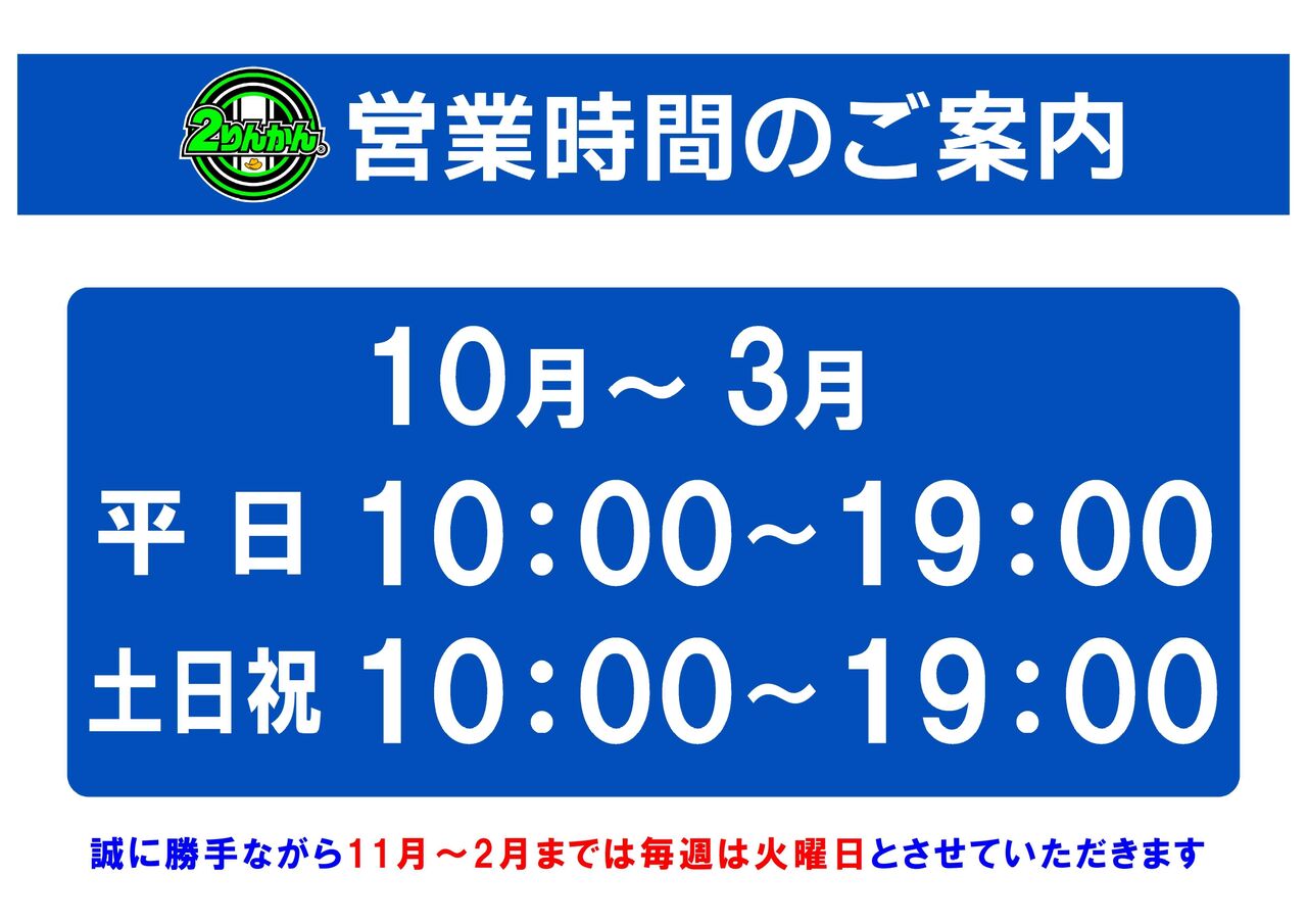 また、10月1日から3月末日まで営業時間が変更になります。