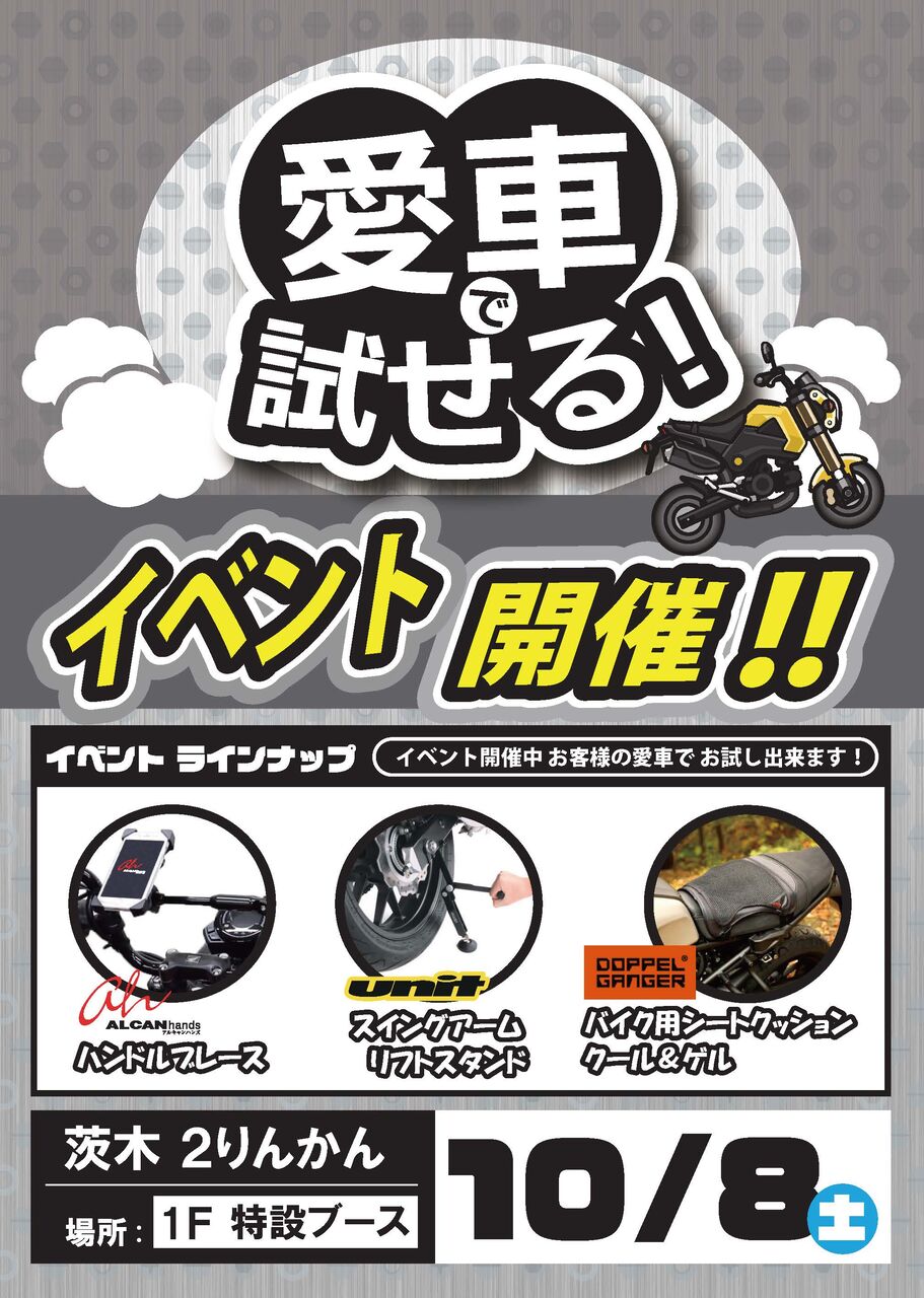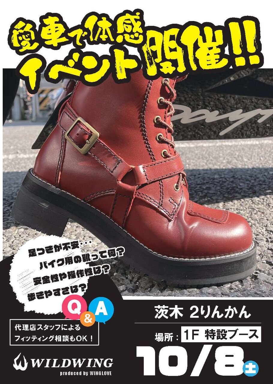 イベント当日にバイクを乗ってきていただくとブーツを試着した状態で愛車にまたがる事が出来ます