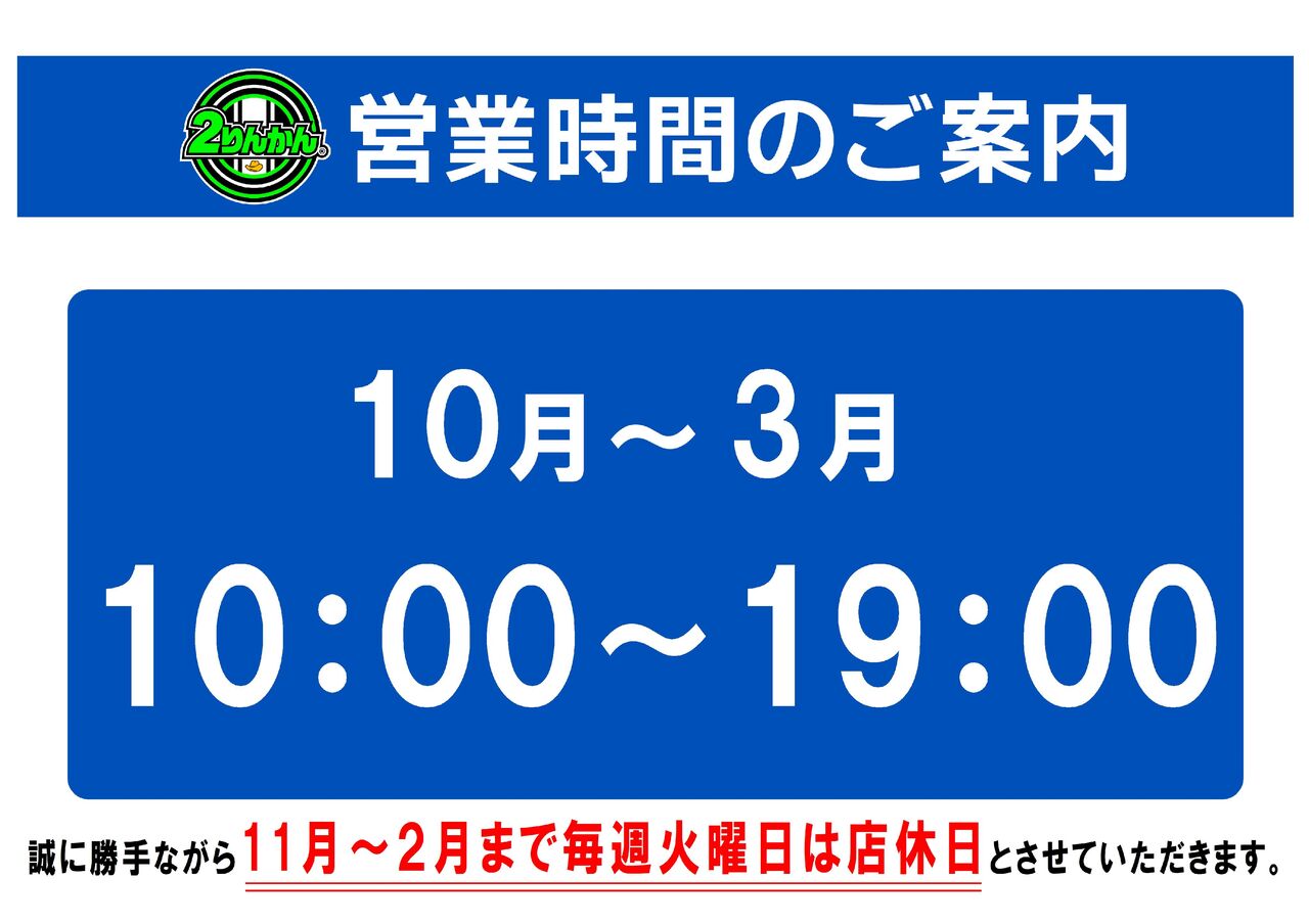 甲府2りんかん 【甲府2りんかん】10月からの営業時間変更と店休日の案内
