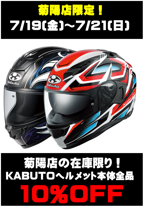 菊陽店の在庫に限り、全KABUTOヘルメットを10%OFFでご提供!!!