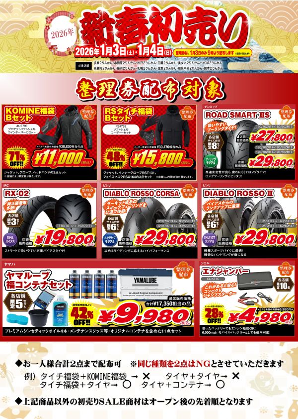1月3日午前9時〜初売りSALE商材の整理券を配布します