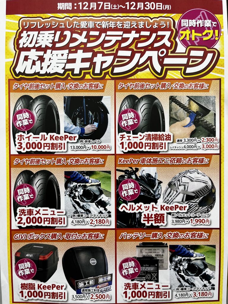当店で新規にカブトヘルメットをお買い上げのお客様に無料で