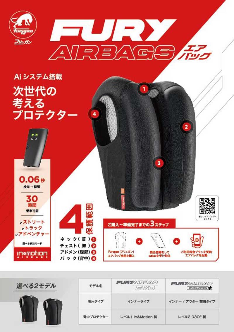 FURY AIRBAGは対応モデルなので、走行前にぜひご準備を!