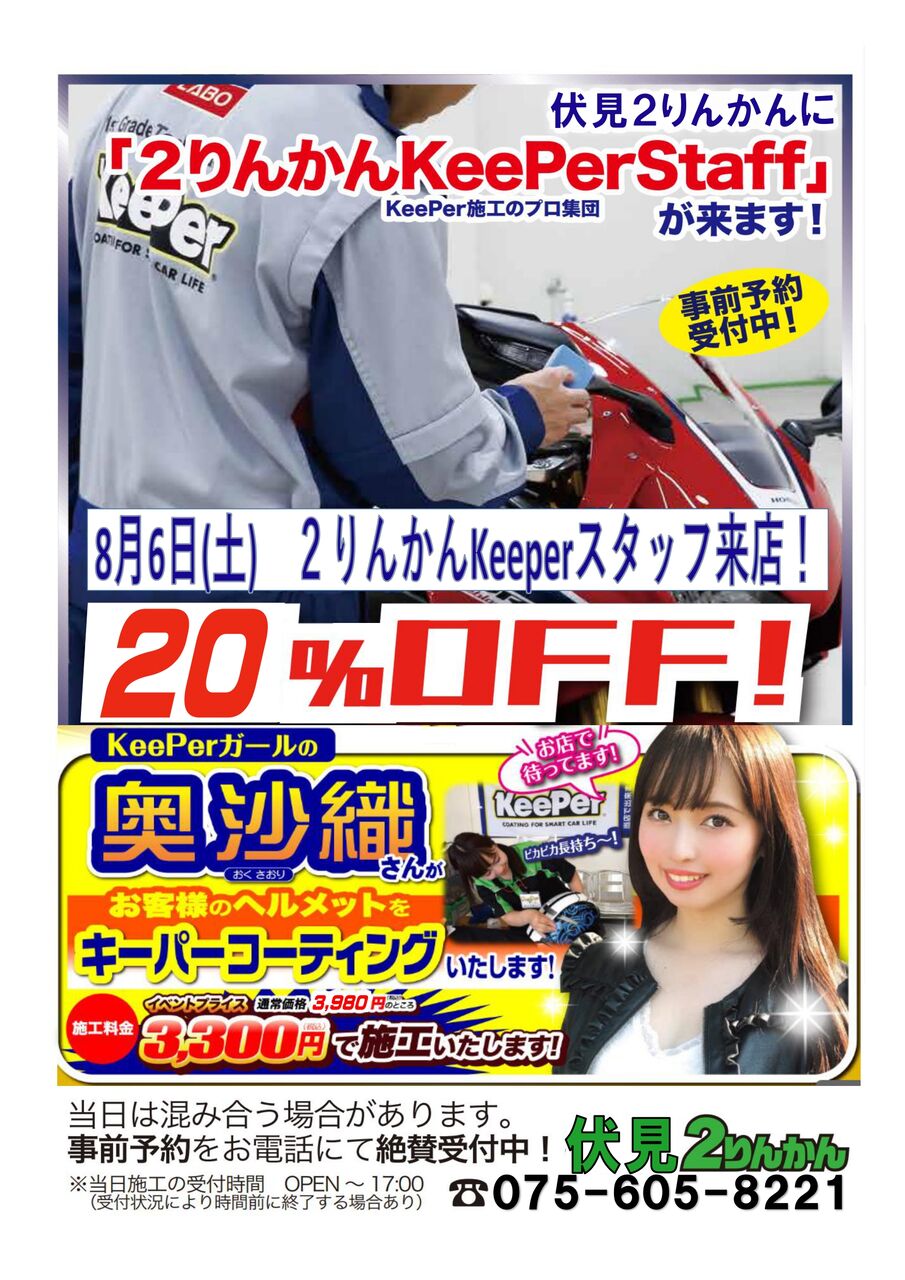 伏見2りんかん 【8/6奥沙織さん来店!】Keeperイベント開催ヽ(・∀・)ノ