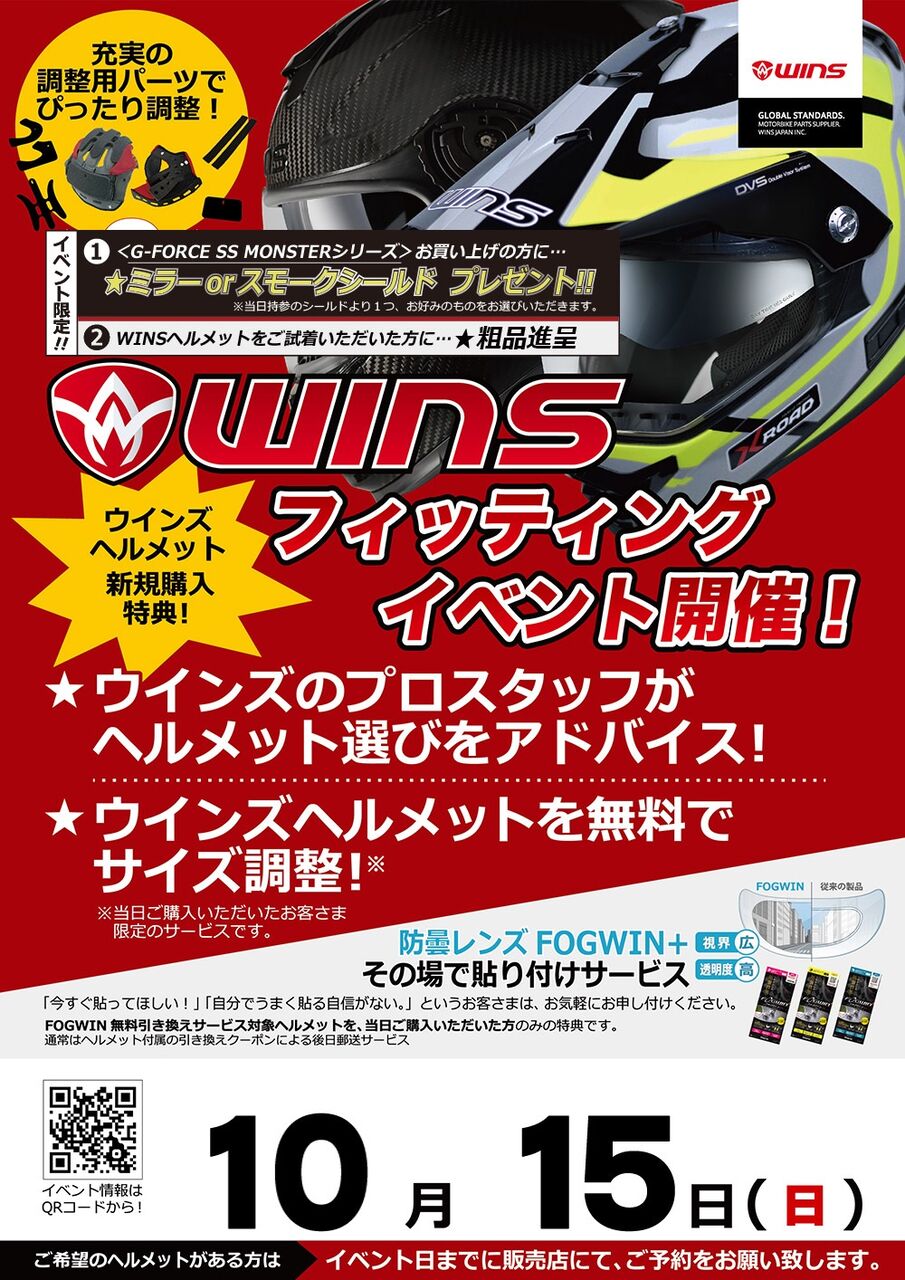 10月15日(日) WINSプロスタッフ来店!!