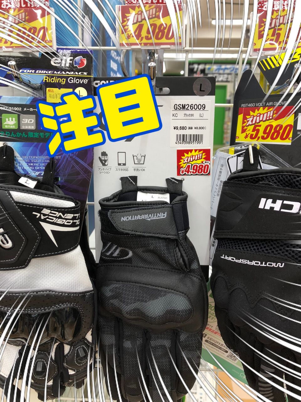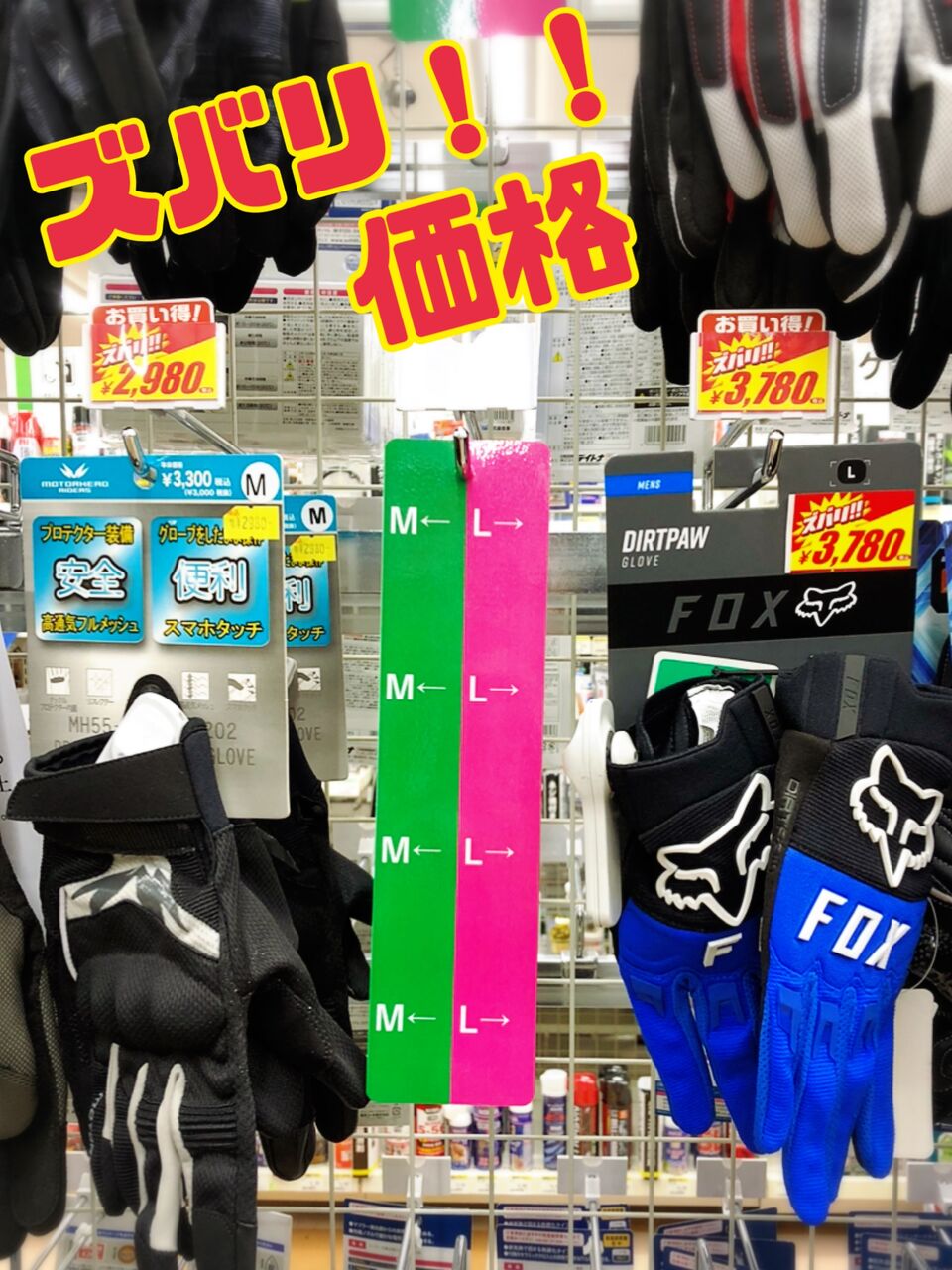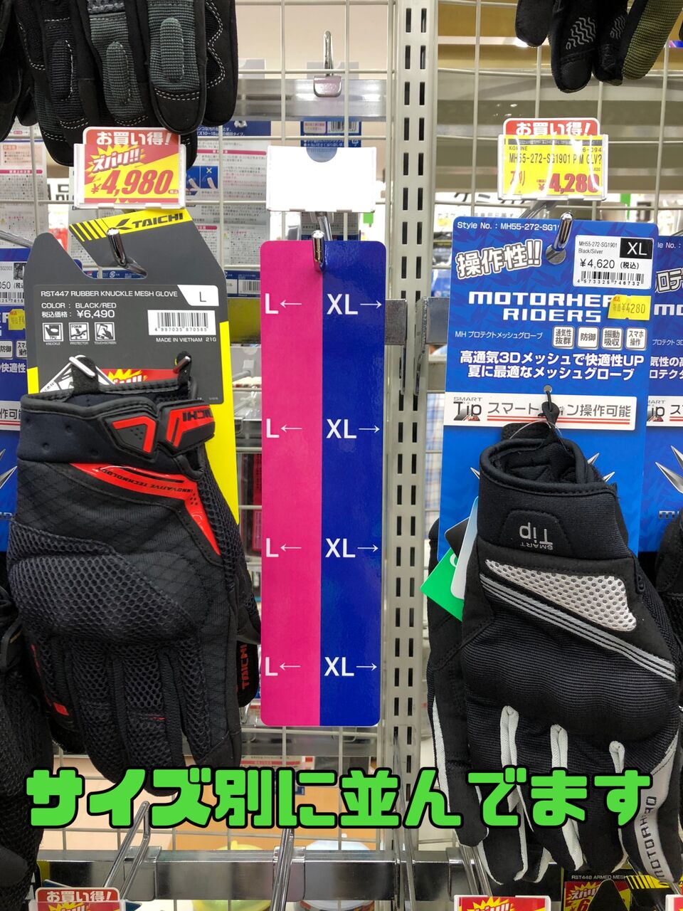 ライディングウェアがSALE開催中の中、夏用グローブの配置を変更しました。
