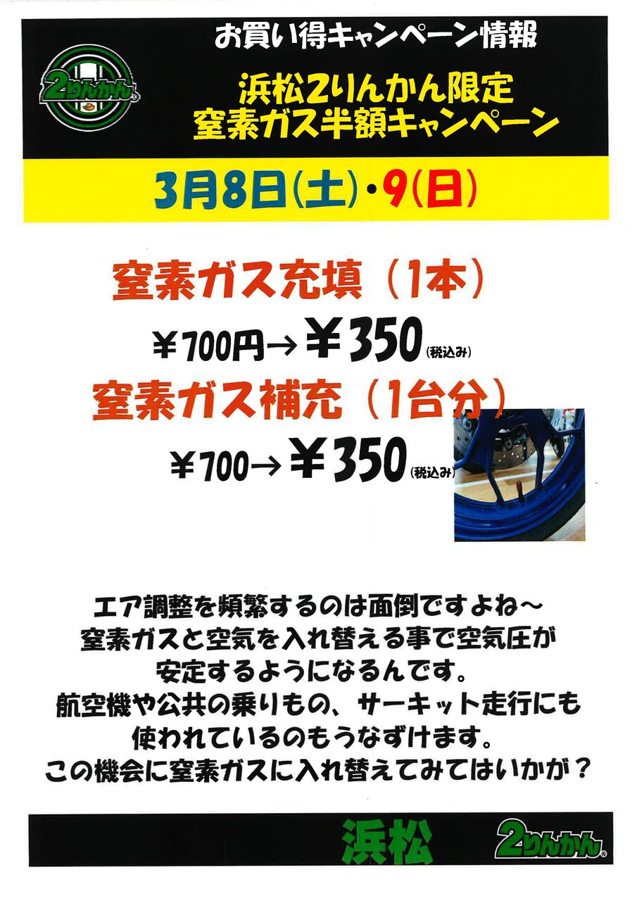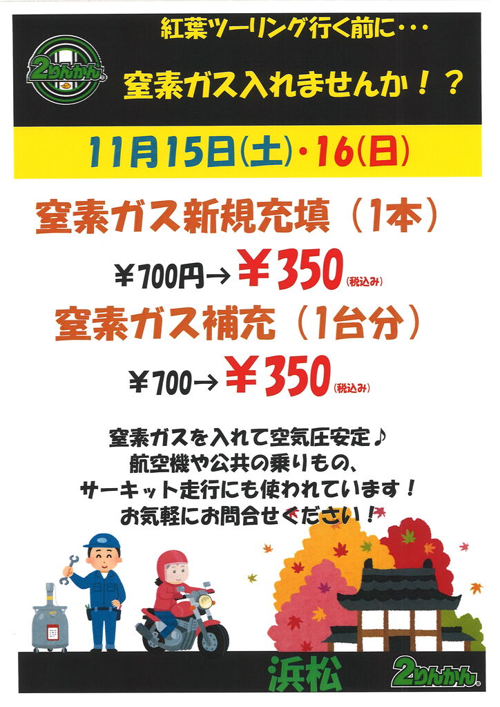 浜松2りんかん 【浜松2りんかん限定】タイヤに窒素ガス入れてみませんか🍠💛